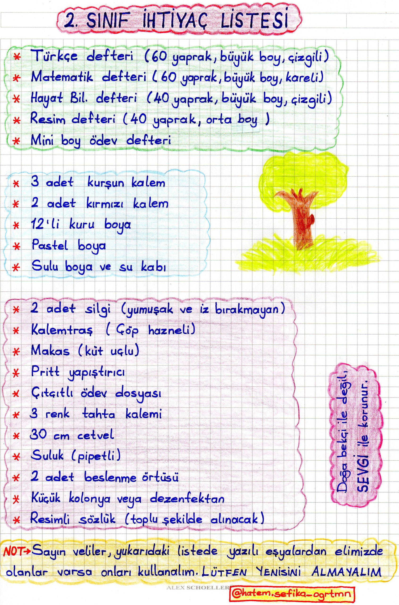 2. Sınıf İhtiyaç Listesi